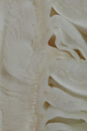 強い自然光のもとで観察すると、植物の表面には皮膚のような皺や分泌物の質感が現れる。特に、褐色の葉鞘や茎の部分には湿り気と油分の光沢があり、植物と動物のあいだにあるような触覚的な印象を与える。